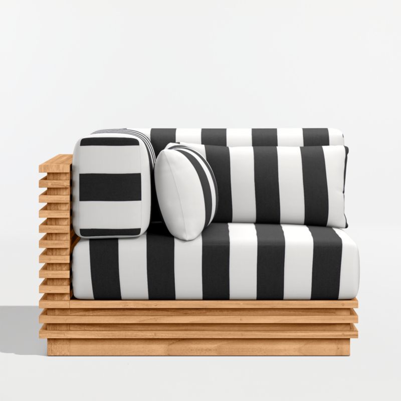 Batten Natural Teak Outdoor Corner Chair with Black and White Cabana Stripe Sunbrella ® Cushions
