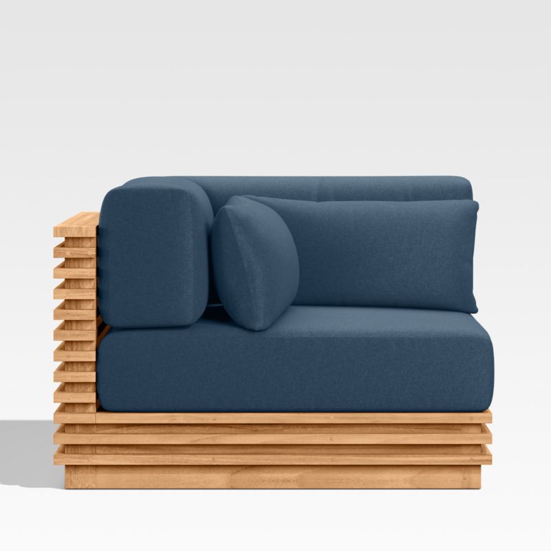 Batten Natural Teak Outdoor Corner Chair with Cast Harbor Navy Blue Sunbrella ® Cushions
