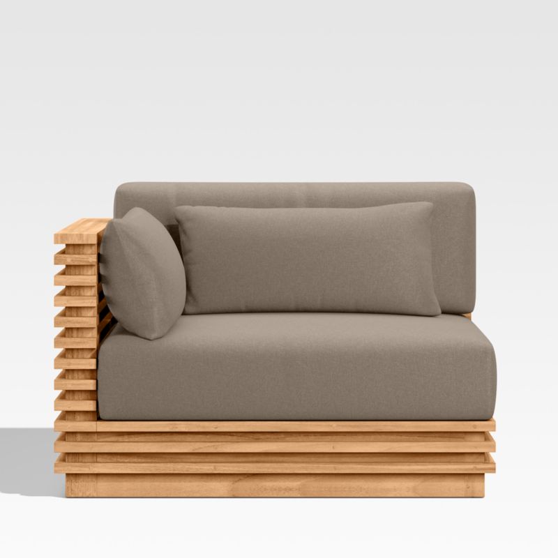 Batten Natural Teak Outdoor Sectional Chair with Cast Shale Brown Sunbrella ® Cushions