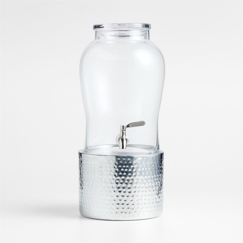 Our elegantly curved glass Beau drink dispenser gives guests a view of your festive punches and refreshing infusions, and the stainless steel spigot provides an easy pour every time. Its classical glass lid allows for easy refills of ice or fluids so the drinks and festivities can keep flowing. Part of our popular Bash entertaining collection, the hand-hammered aluminum beverage stand gives a lift to the dispenser, providing extra room under the spigot for easier pouring.