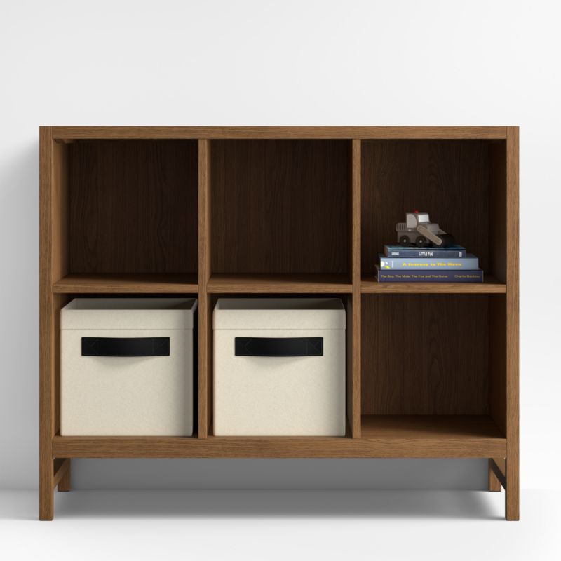 Whether you want to hide things away or show them off, our Beau 6-Cube Bookcase is a game changer in the kid's room or playroom. Fill the cubes with storage bins, stacks of books or sweet little vignettes of favorite treasures—or a combo of all three. No matter how you use it, the bookcase has all the makings of a modern classic, thanks to its clean lines and warm, medium brown oak finish.