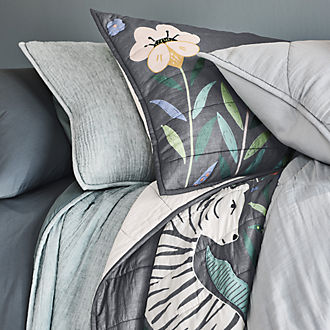 Make bedtime a little easier with modern baby and kids' bedding they'll love from Crate & Kids. Not only are the duvet cover, sheet sets, pillowcases and other essentials made of 100% organic cotton, they also feature playful patterns and colors—turning your little one's nursery or bedroom into a whimsical oasis. Do they enjoy all things cute and cuddly? Consider draping an animal-themed quilt over their twin bed. Or, for kids who dream of reaching the majors, go with sports-inspired shams instead. During the holiday season, consider adding festive kids' Christmas bedding to the setup for added seasonal magic. In any case, once they start attending sleepovers, they'll need a sleeping bag to keep them cozy while watching movies and playing games. Want more baby and kids' bedding ideas? Read on to find the best fit for your child.
