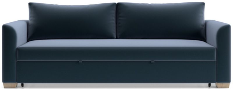 As a sofa, Bedford's bench seat, cushion back pillows and suggestion of a roll arm make it an easy partner to a wide range of decor. Good news for apartment or older home dwellers—the trundle portion can be disassembled to allow the sofa to fit through narrow passages.