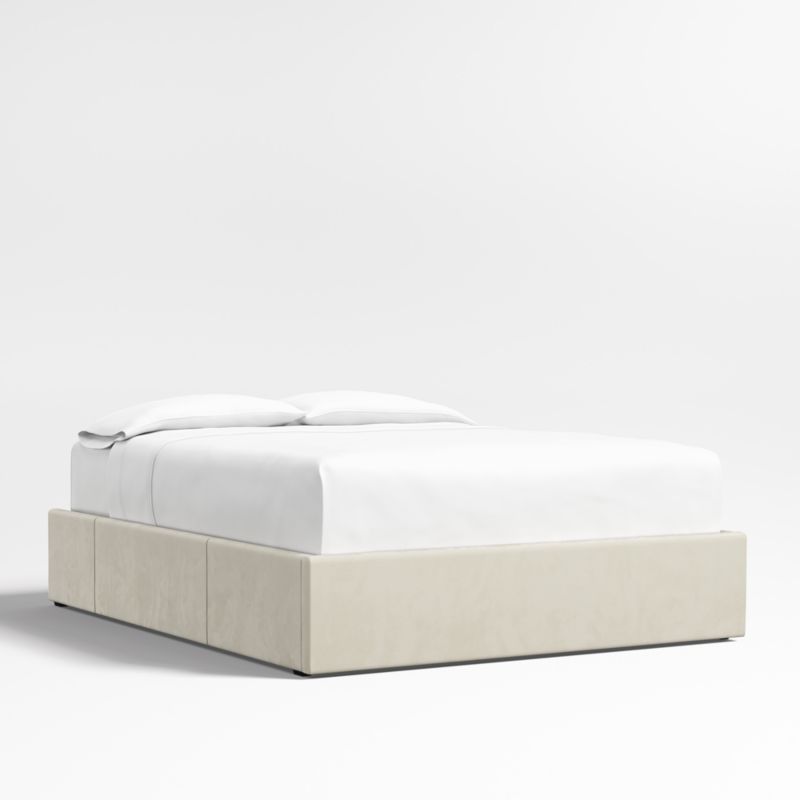Beige Upholstered Queen Storage Bed Base