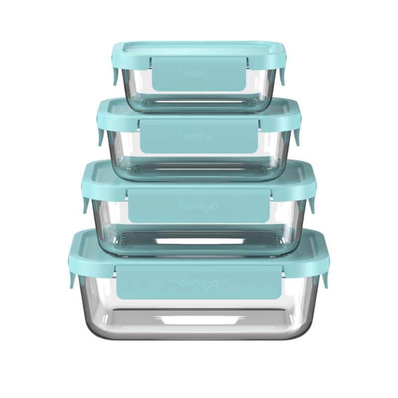 Keep meals, produce and ingredients fresh and your refrigerator organized with Bentgo's leakproof food storage set. Crystal-clear borosilicate glass containers give you a clear view of contents, while clip-on lids lock in place for a leakproof seal. Designed for convenience, the containers are perfect for heating, freezing and storing all kinds of foods. The eight-piece set comprises four rectangular lidded containers, one each of four sizes.