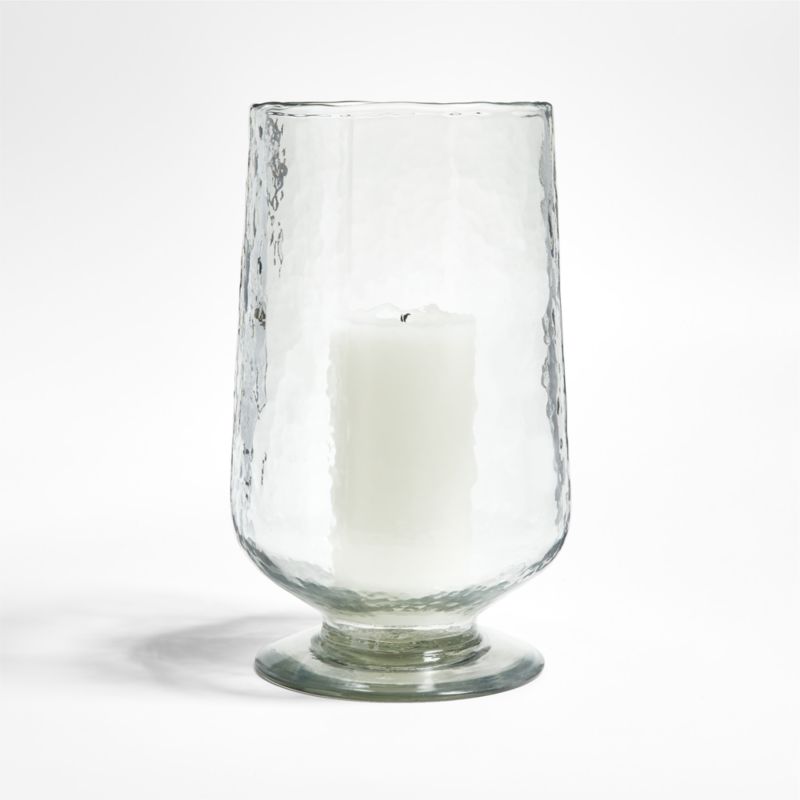 A rippled surface and wavy rim give our Bergen glass candle holder an organic texture and look. Elevated upon a pedestal base, the translucent hurricane shapes confident curves that show off the substantial recycled glass. Cluster the large hurricane with the smaller Bergen pieces and our blue vases in a spectrum of fresh, cool hues for a cohesive display.