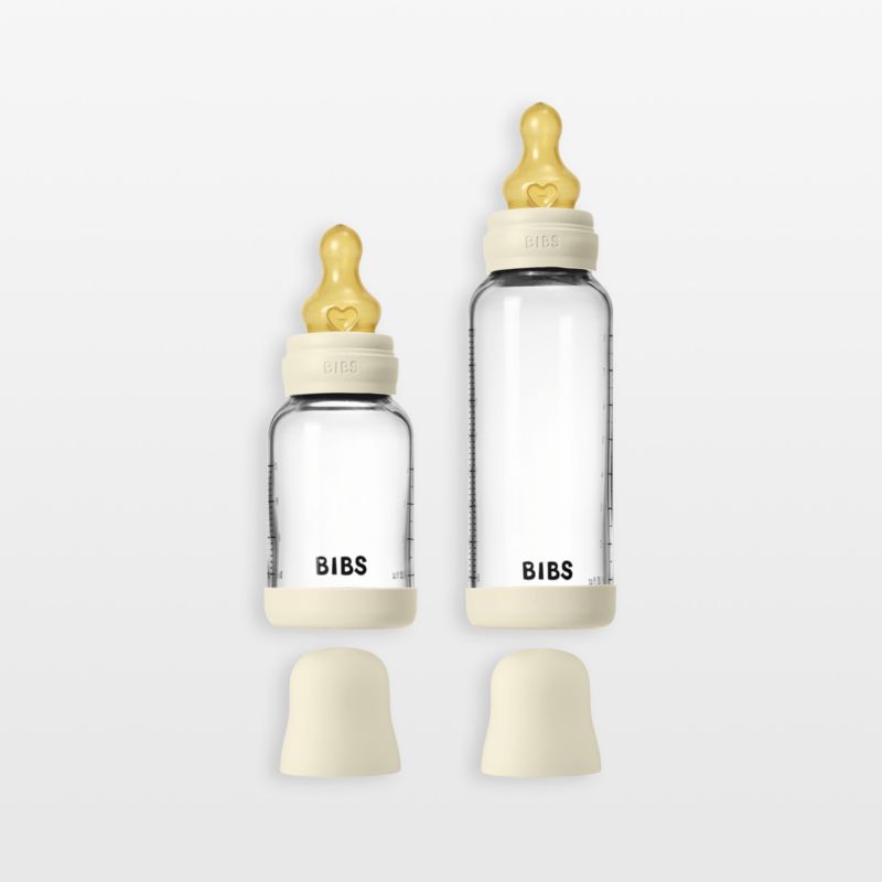Parents have long counted on BIBS award-winning glass bottles for happy, fuss-free feedings. This set includes a 4-ounce bottle with a slow flow for young babies, and an 8-ounce bottle with a medium flow to keep up as their feeding pace changes. Each one is fitted with a latex nipple and an anti-colic valve to reduce gas and reflux. A milk lock prevents spills, and a collapsible funnel makes it easier to mix formula. The durable, scratch-resistant glass bottles are dishwasher safe.