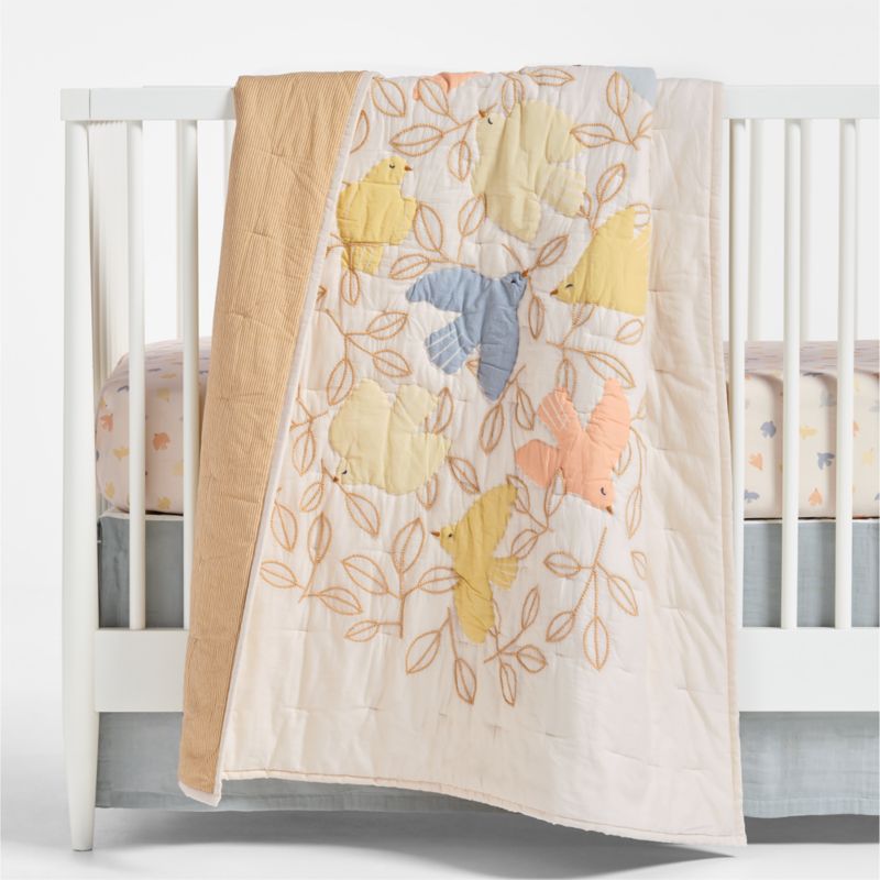Birdie Blossoms Organic Cotton Baby Crib Quilt