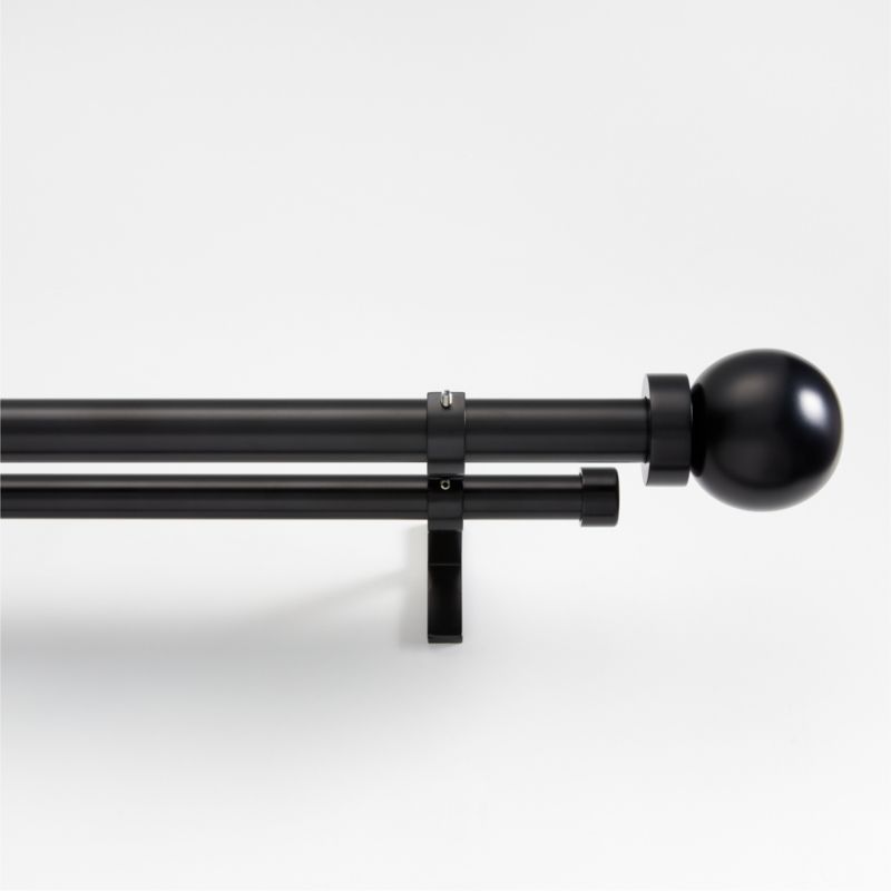 • View Black 1" Double Curtain Rod and Large Round End Cap Finials Set 48"-88" - image 2 of 2