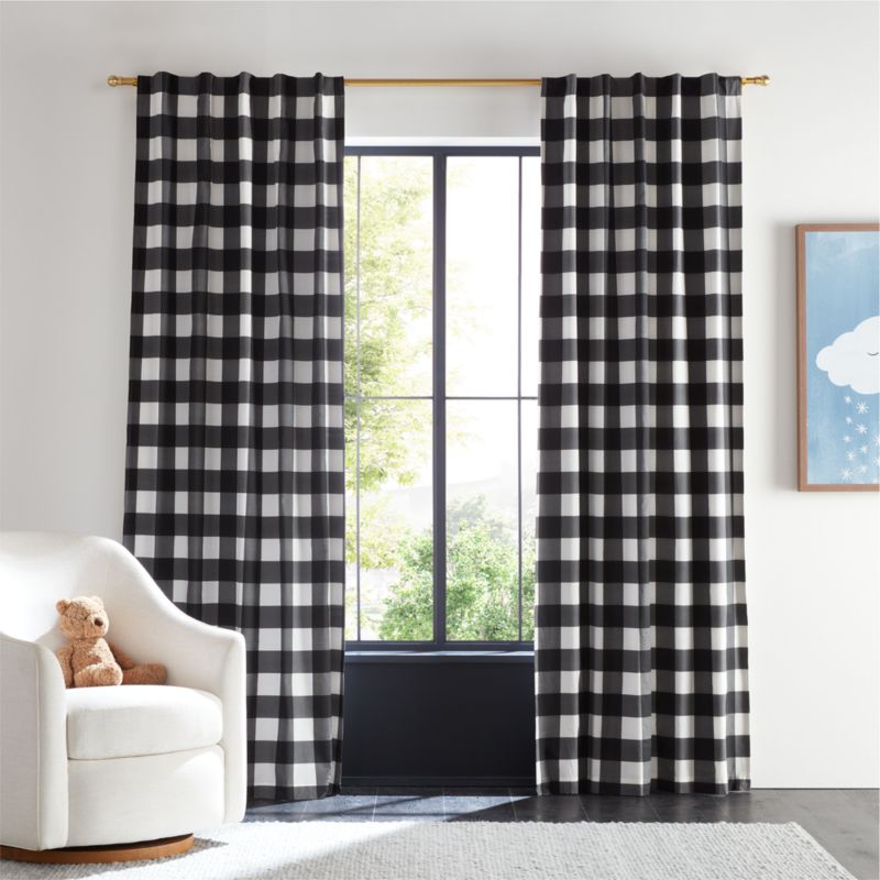 Black Buffalo Check Cotton Blackout Window Curtain Panel 44"x63"