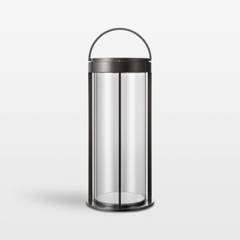 Designed to resemble an architectural tower, this sleek lantern from Blomus provides soft illumination indoors and out. The slim, cylindrical lantern secures a darkened glass shade within a gunmetal-finished aluminum frame, casting ambient light from the top and bottom. The rechargeable lantern offers three light settings and a dimmable mode, providing up to 22 hours of illumination.
