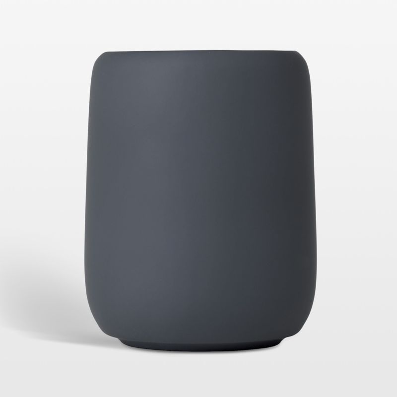The Blomus SONO bathroom collection brings together gentle ceramic shapes coated in soft silicone that mix and match beautifully. Crafted with rounded edges and a silky matte grey finish, this tumbler serves as an elevated drinking glass and toothbrush holder. The vessel looks modern and understated on a sink or vanity, complementing your bathroom decor whether on its own or paired with coordinating pieces in the collection.