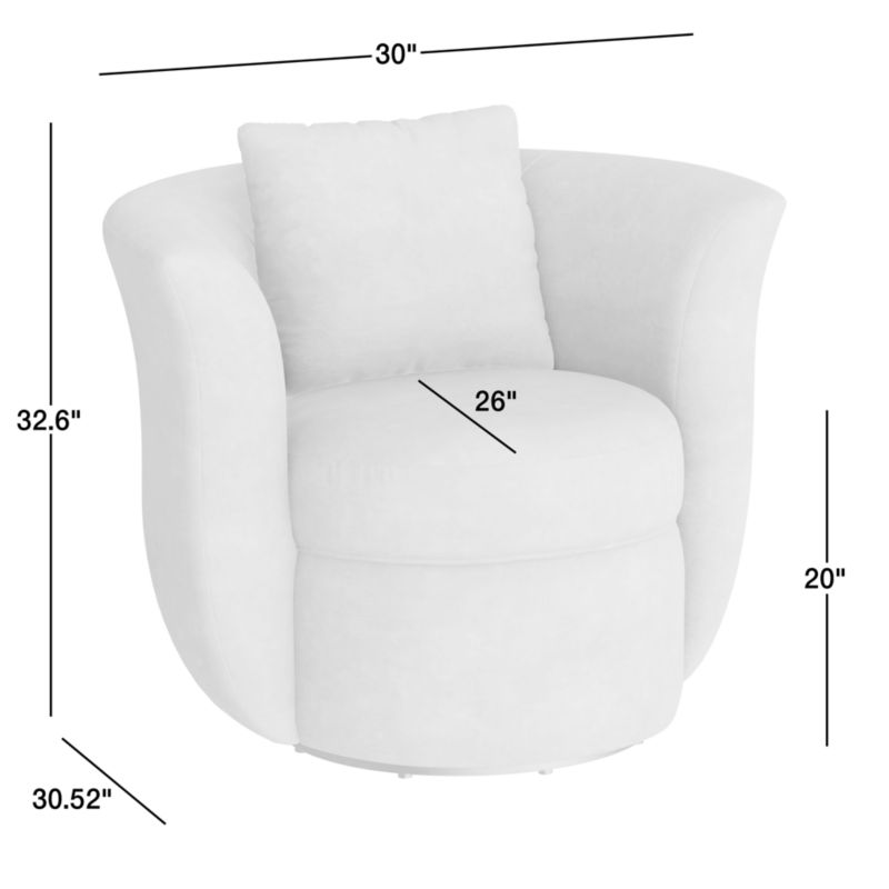 We looked to vintage Art Deco design in developing Blume's dramatic tulip shape. The accent chair's barrel back flares petal-like curves that embrace the loose back and round seat cushions. Petite in scale with a taller seat, the chair offers a comfortable sit with medium-firm support and swivels in the round for maximum versatility. An exceptionally durable velvet tailors Blume with rich color and a sumptuous hand.