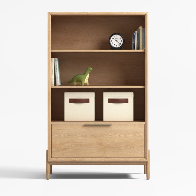 With its clean, simple lines, our Bodie Bookcase is a timeless kids' furniture design that's totally comfortable in modern homes. This durable storage essential includes open shelves up top to fill with books or storage bins, plus a roomy drawer that's perfect for stowing away toys, trinkets and more. The bookcase's gorgeous natural grain lends a touch of warmth to a bedroom or playroom. Crafted to last and grow with families, it makes the perfect companion piece to the rest of our Bodie collection.