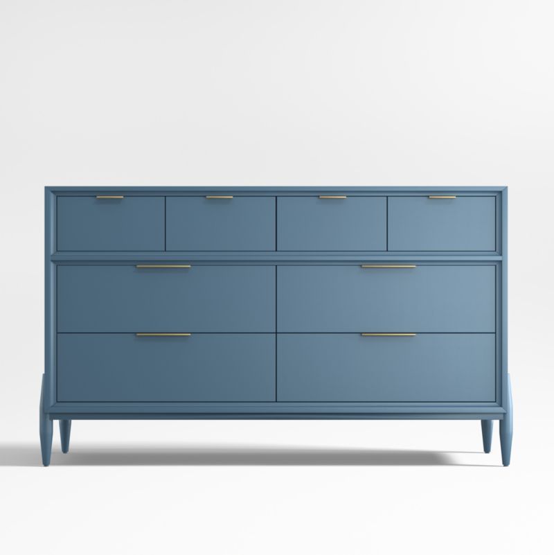 Simple, clean and gender-neutral, our Bodie dresser is a timeless kids furniture design that's totally at home in a modern nursery and big kid's room. The rich, blue hue will add a playfully elevated color pop to kids rooms and nurseries, while the mix of compact drawers up top and larger ones below will simplify organization. Crafted to last and grow with your family, the blue dresser has a style that will compliment the look of your little boy or girl's room.