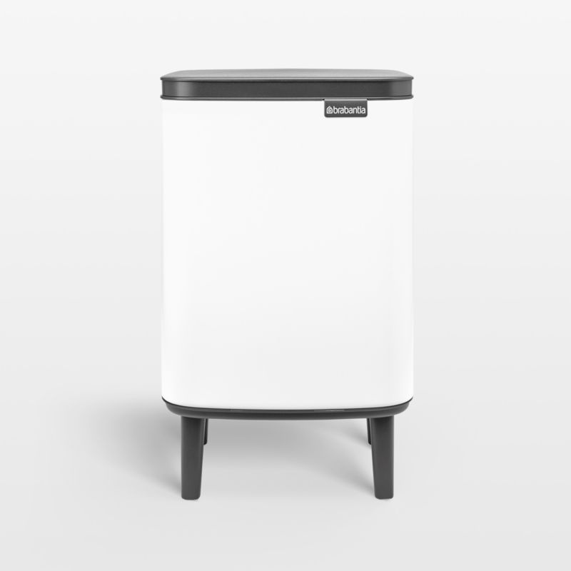 Clean and graphic in black and white, this trash can suits modern bathroom decor. Slender legs elevate the steel waste bin to reduce the need to bend over—and add charming style. The removable inner bucket keeps a bag concealed, and a sample pack of Brabantia PerfectFit bags is included. A soft-touch mechanism opens and closes silently at a light touch, and the lid holds itself open until you're ready to close it.