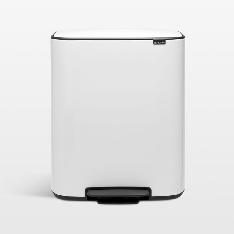 This matte white waste basket suits the modern kitchen. Constructed with subtly rounded corners and black accents, the sleek and streamlined bin hugs the wall to stay out of the way. The height reduces the need to bend over, and the non-slip base protects your floor. Opening with a light touch of the pedal and closing softly, the lid holds itself open until you're ready to close it.