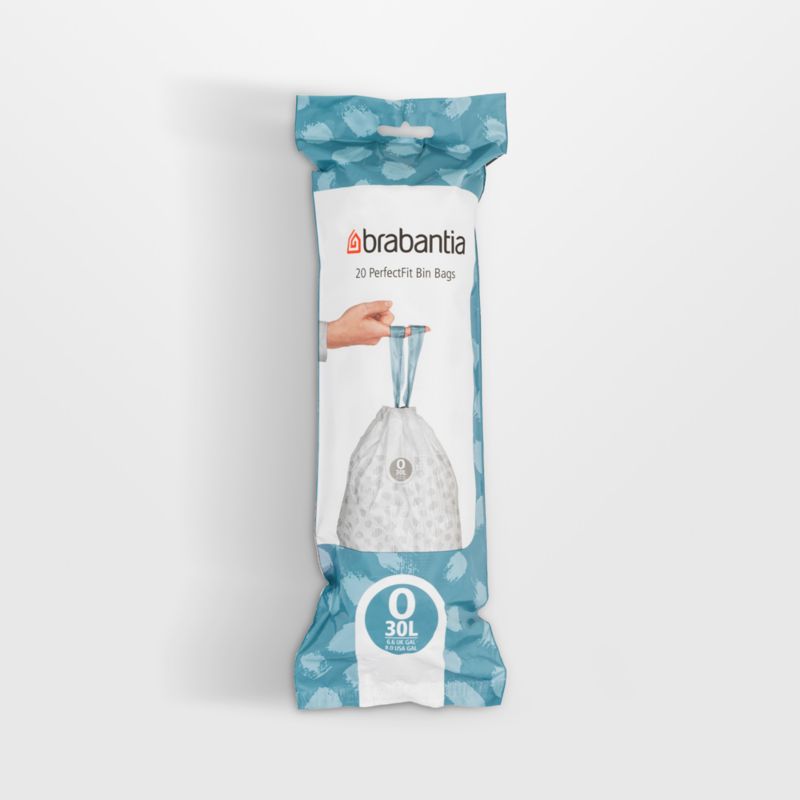 User-friendly trash bags designed for your 30-liter Brabantia waste basket (sold separately). Made of extra-strong plastic, the 120 tear-resistant bags close securely with a drawstring that doubles as a carrying handle. Clever ventilation holes prevent a vacuum effect in the trash can for easy removal.