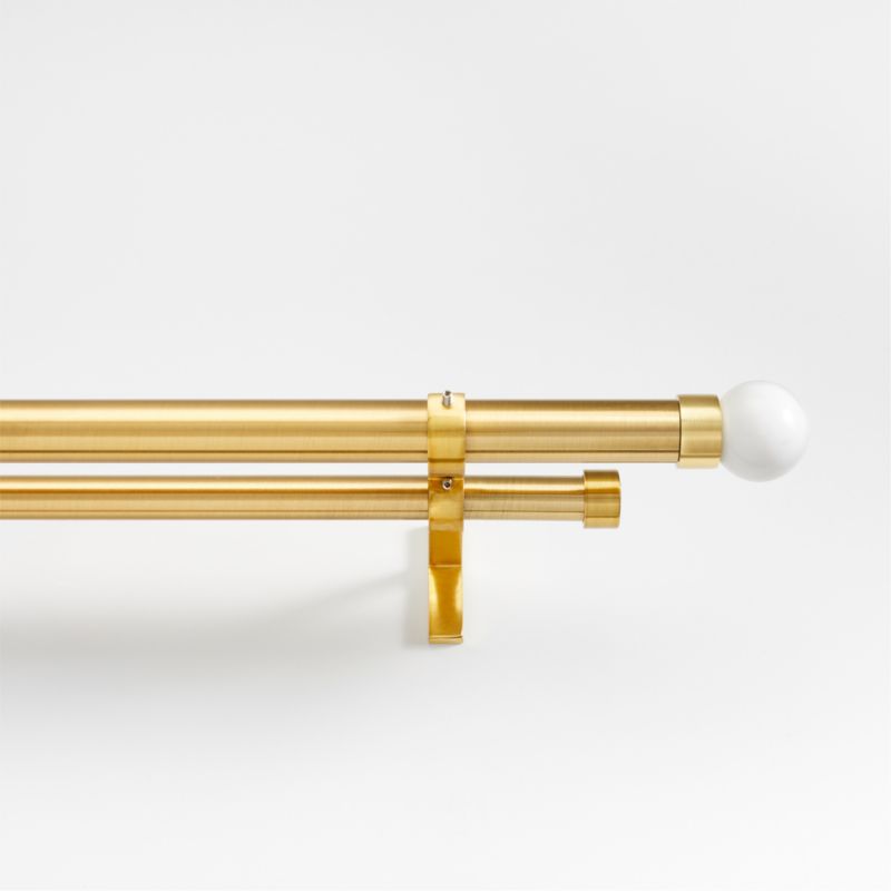 Brass 1" Double Curtain Rod and Small Marble Round End Cap Finials Set 48"-88"