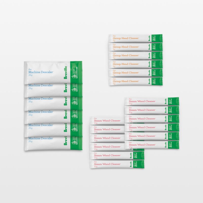 Keep your coffee tasting great and your Breville espresso maker clean with this easy-to-use set. Each of the three types of single-dose sachets—descaling, group head cleaning and milk wand cleaning—is made with odorless materials to safely remove oil and residue in just one application.
