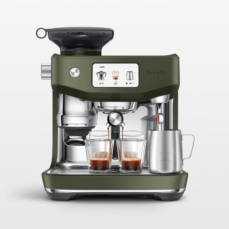 The Oracle Jet automatically crafts impeccable espresso drinks in moments, right at home. The conical burr grinder with 45 grind settings starts your coffee drinks off right, automatically grinding, dosing and tamping grounds directly into the stainless steel portafilter. The boiler heats water in seconds to precisely the right temperature. Choose from 10 delicious drinks or create your own recipes and save to the custom menu. Once your espresso, cold brew or cold espresso is extracted, the MilQ frother automatically creates silky smooth microfoam—choose from four milk types and eight texture levels to suit your tastes exactly. Finished in a handsome green hue inspired by olive tapenade, the espresso machine has a modern, understated presence on your countertop or coffee station.
