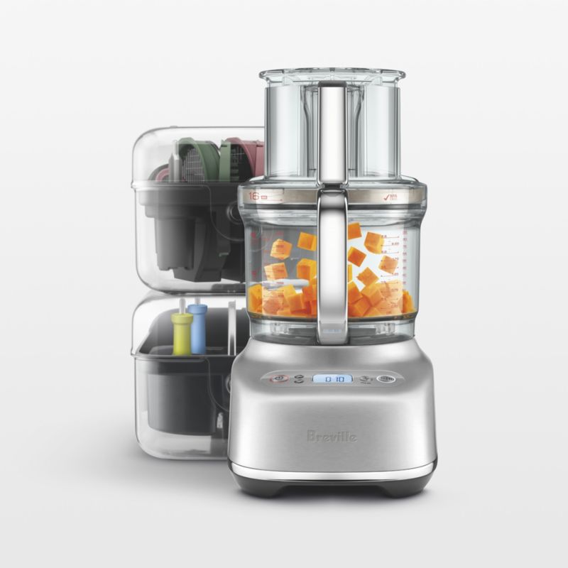 Equipped with a range of cutting options and an extra-wide feed chute, this versatile food processor can tackle all of your kitchen prep chores. Multiple cutting options include adjustable, french fry and reversible fine/coarse shredder slicing discs as well as the Paradice kit with three double-action blades that create consistently uniform 8-, 12- and 16-mm cubes. The 16-cup work bowl lets you whip up crowd-size recipes, while the mini bowl takes on smaller tasks. Finished in brushed stainless steel, the processor looks sleek and modern on the countertop.