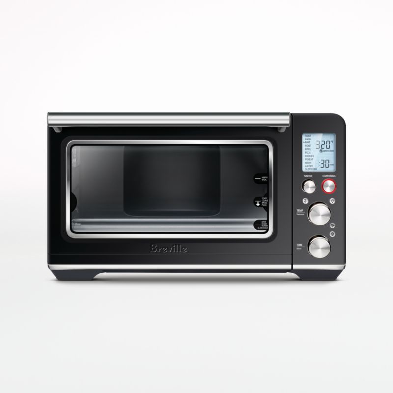 Enjoy guilt-free french fries, chicken wings as well as pizza, baked cookies and more with this multi-tasking air fryer from Breville. Higher temperatures combined with maximized airflow deliver delicious crispy air-fried foods. Smart algorithms and sensitive temperature control eliminate cold spots for precise and even cooking. Take the guesswork out of meal prep by choosing one of 11 cooking functions for toast, bagel, broil, bake, roast, warm, pizza, air fry, reheat, cookies and slow cook. Reducing cooking times up to 30%, this appliance saves time, opens up possibilities and looks great on the counter with its chic black truffle finish.