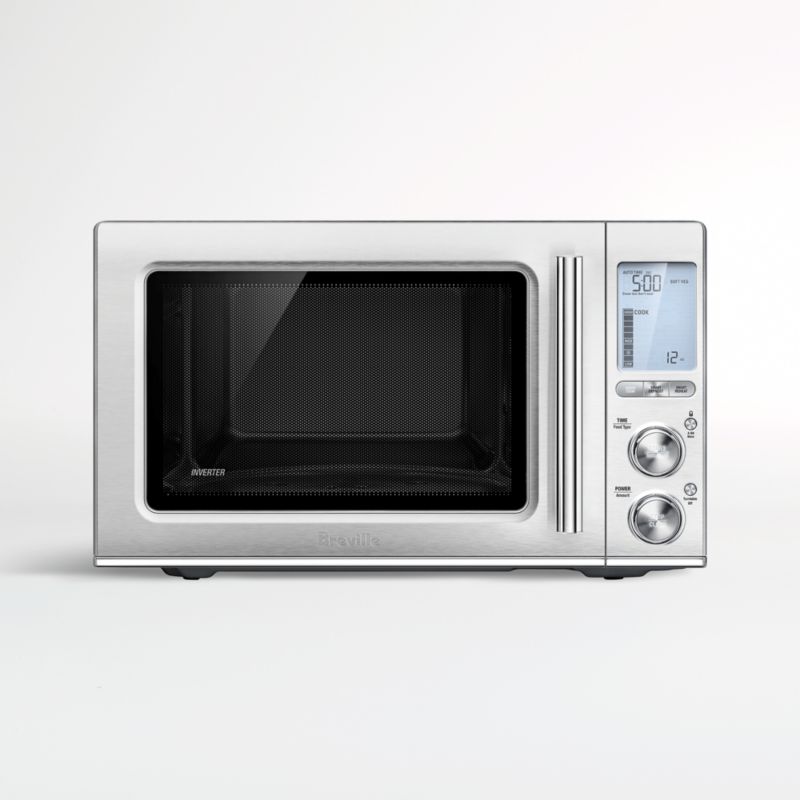 With its innovative power smoothing, quiet operation and soft-close door, this microwave cooks and warms precisely without making a fuss. The Sensor iQ technology automatically adjusts power to cook, defrost and reheat evenly for optimal results. Preprogrammed buttons handle common cooking tasks such as softening butter and melting chocolate for baking or reheating pizza for breakfast, while 15 preset functions easily handle favorites such as bacon, frozen vegetables and oatmeal. Clad in brushed stainless steel, the Smooth Wave microwave offers plenty of cooking space with a timeless look.