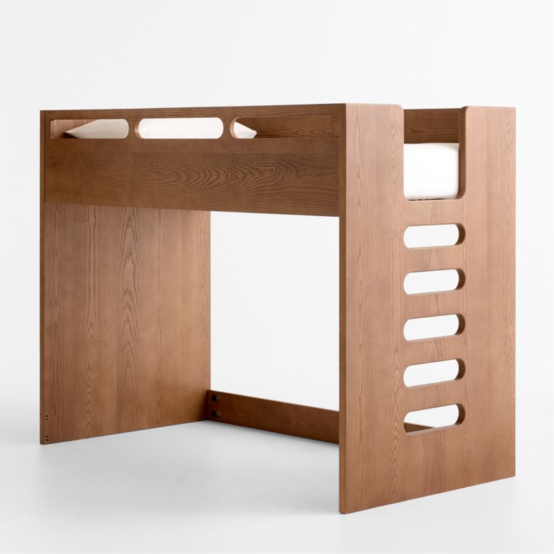 With its space-saving capabilities, our Bridgeman loft bed is a pro at maximizing square footage in a kid's room. Thoughtfully built with contemporary lines and a smaller profile than a typical loft, it features a unique incorporated ladder that makes the bed even more compact—and the ladder can be placed on the left or right side to suit your space. Use the area under the loft for a reading nook or a place for play, or add the storage trundle bed (sold separately) for a shared sibling setup. The hazelnut finish showcases the FSC®-certified wood's natural grain, making it easy to coordinate with nearly any decor.
