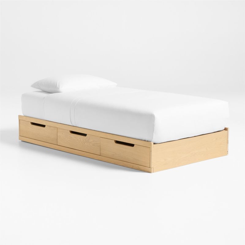 With its extra storage and sleek profile, our Bridgeman Storage Trundle Bed is a pro at maximizing square footage in a kid's room. Thoughtfully built with contemporary lines and roomy storage drawers, it's perfect for tucking away clothes, bed linens, toys and more. Plus, the light oak finish showcases the FSC®-certified wood's natural grain, making it easy to coordinate with nearly any decor.