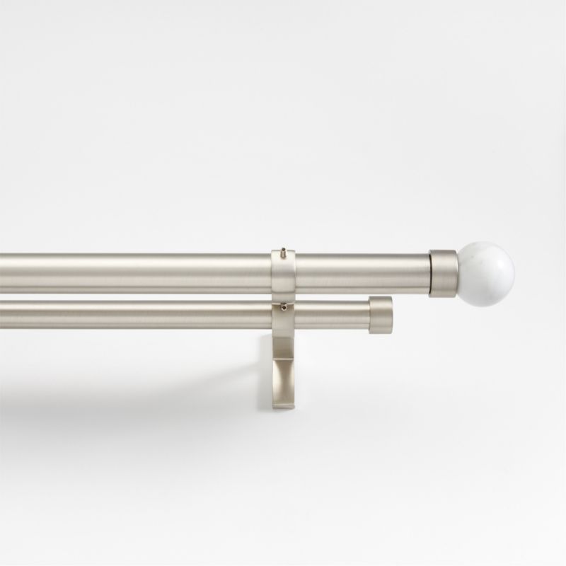 • View Brushed Nickel 1" Double Curtain Rod and Small Marble Round End Cap Finials Set 120"-170" - image 2 of 2