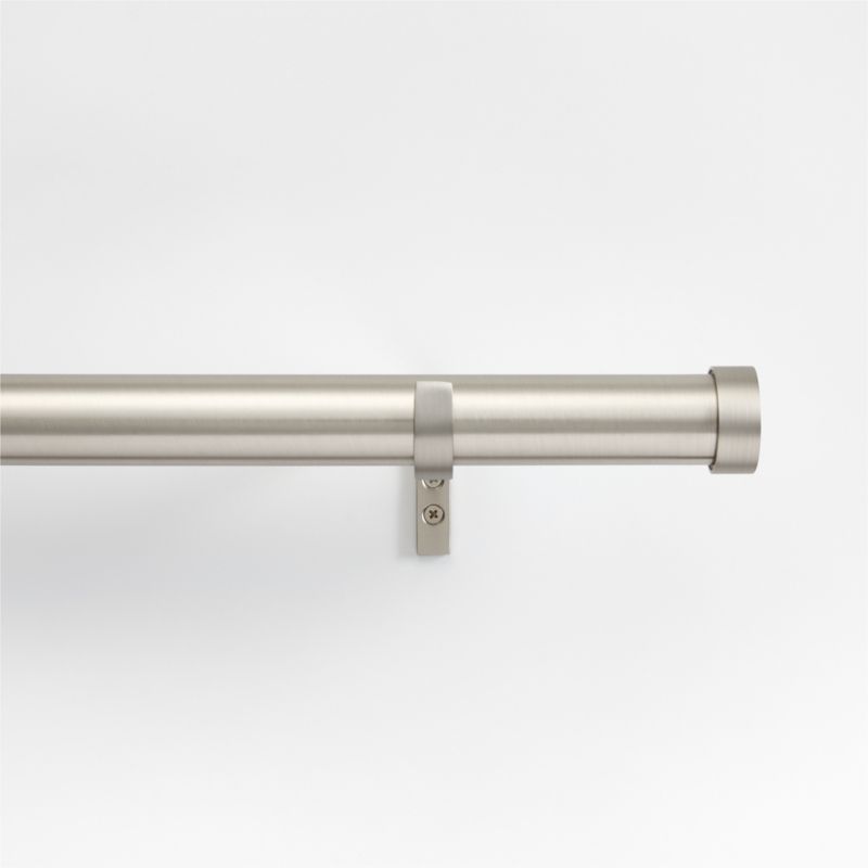 Show your curtains off to their best advantage with this modern rod set. Held in understated brackets, the round telescoping rod is finished at each end with button-shaped end cap finials that continue the cylindrical look. The curtain rod set includes a telescoping rod, brackets and mounting hardware, all in handsome brushed nickel. Complete your window dressing with our brushed nickel curtain rings and tiebacks (sold separately).