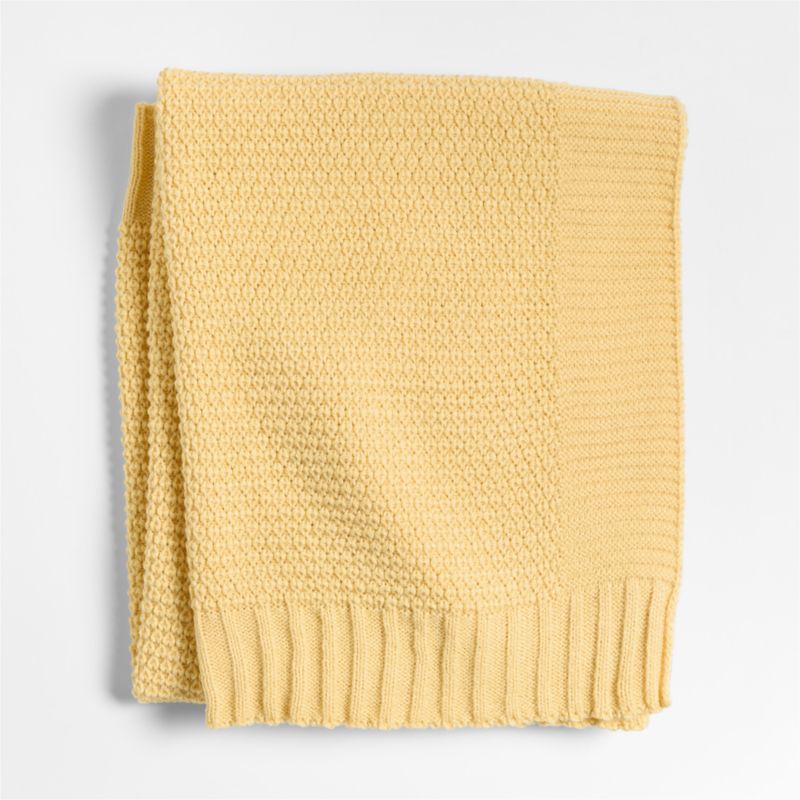 Crafted with a mix of knitting stitches, our bubble knit stroller blanket creates the cozy, comfy texture that babies love in cheery straw yellow. The supersoft, durable acrylic material provides an insulating layer from cooler weather, and the fiber is breathable to keep little ones at a comfortable temperature when out and about. Evoking the cuffs of a favorite sweater, the blanket's broad border stands up to tugs from tiny fingers. Plus it's machine washable to help maintain its beauty for years to come.