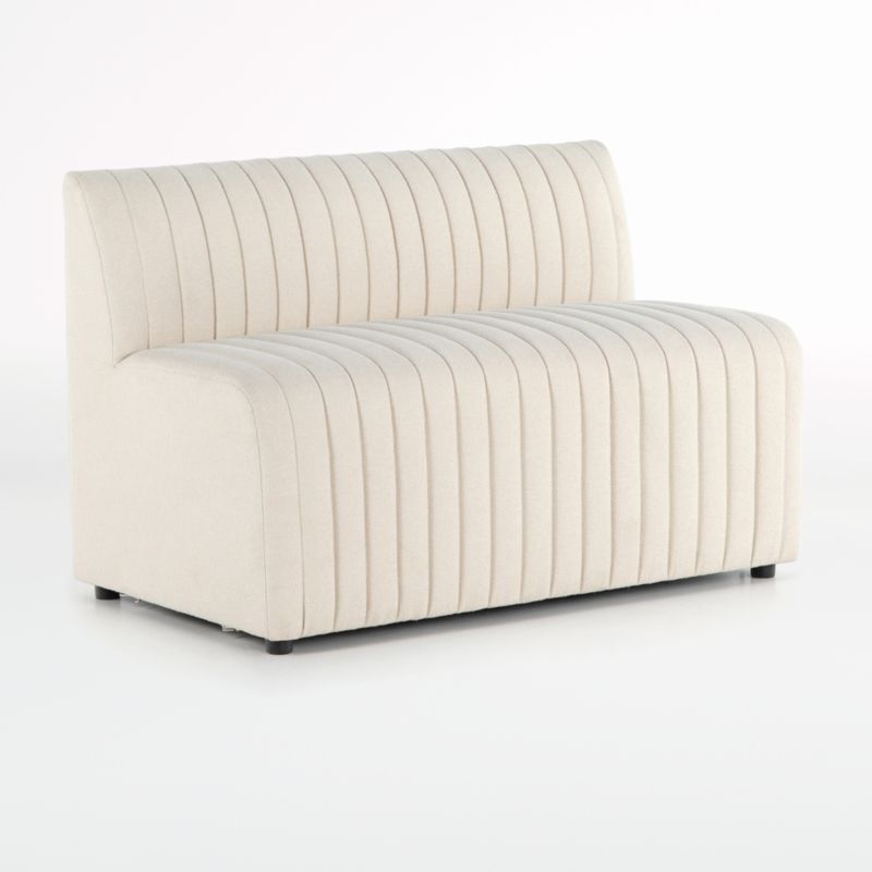 Settle into the sumptuous comfort of our Buchanon banquette bench. Styled with a waterfall seat and gently rounded back, the bench's flowing design gets even more drama from vertical channel stitching that amps up the drama and texture. Performance fabric upholstery in oatmeal adds lightness to the solid silhouette. Great for a kitchen or dining room, the bench teams up with Buchanan dining chairs for expanded seating or pairs with a table and chairs as a sofa-style option.