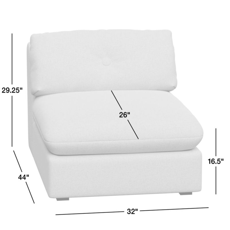 As cool and casual as its namesake Chicago neighborhood, our Bucktown sectional invites the whole family to curl up and snuggle in. Propped on a thick deck, the armless chair's rounded seat cushion sits deep, plush and loungey. Bucktown delights with attention-getting design details such as oversized button tufting on the back pillow and the waterfall construction that grounds the piece in contemporary curves. Combine the armless chair with other components to create a Bucktown sectional sofa to suit your space.
