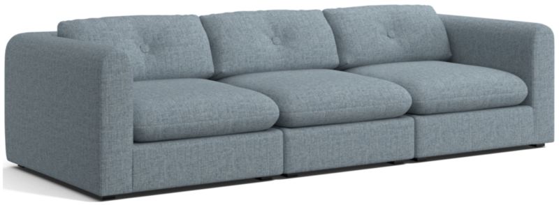 As cool and casual as its namesake Chicago neighborhood, our Bucktown sectional invites the whole family to curl up and snuggle in. Propped on a thick deck, the sectional sofa's rounded seat cushions sit deep, plush and loungey. Toss off the back pillows and it's deep enough to sleep an overnight guest. And because it's a Crate & Barrel exclusive, Bucktown delights with attention-getting design details such as oversized button tufting on the back pillows and the waterfall construction that grounds the modular sofa in contemporary curves. The three-piece sectional consists of an armless chair and left- and right-arm chairs.