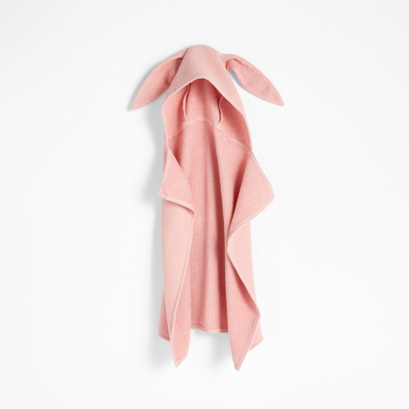 End every bath with a warm, fuzzy bunny hug. Our pink hooded baby towel is tailored of soft and absorbent organic cotton that is especially gentle on sensitive skin. A waffle weave makes the towel plush yet lightweight and fast drying. Detailed with two long, floppy ears, the hooded baby towel can be paired with our Bunny wash mitt for a fun bathtime duo (and a thoughtful baby shower gift).