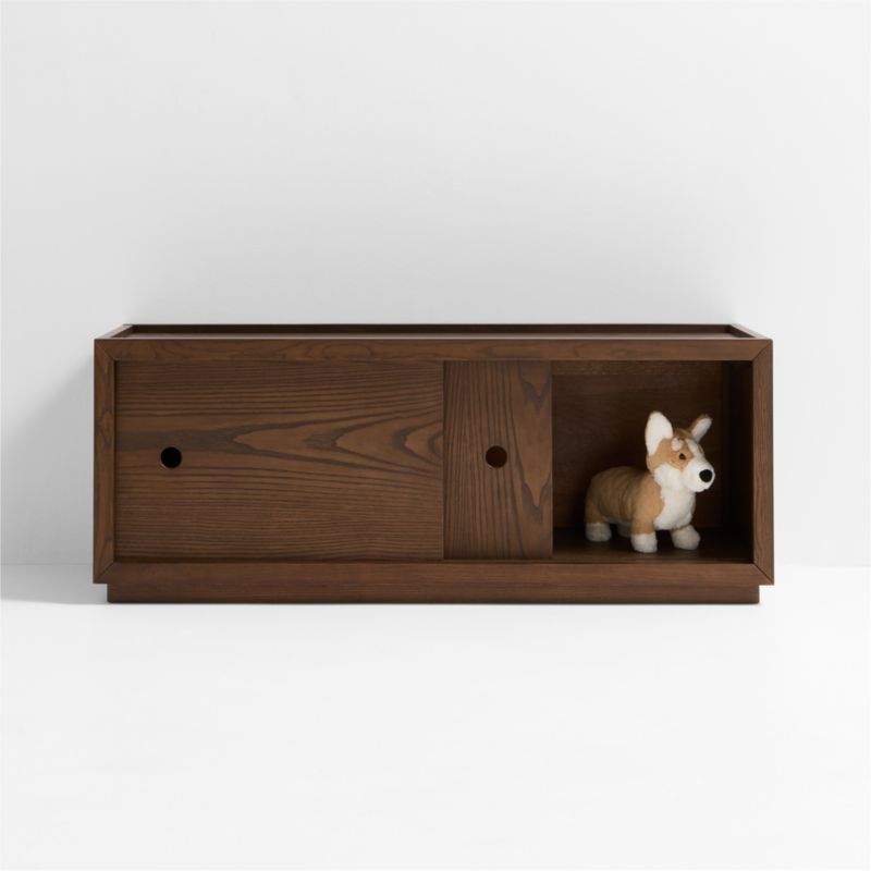 With a sleek, compact design, our Cade 2-Cube Bookcase is a decluttering essential. Use the bookcase on its own, or stack it up to three units tall for a mighty storage piece. The deep brown finish showcases the beautiful wood grain—with the option to install the doors with the grain running vertically, horizontally or a combination of both for a playful look. The bookcase is equally at home in nurseries, kids' rooms and shared family spaces.