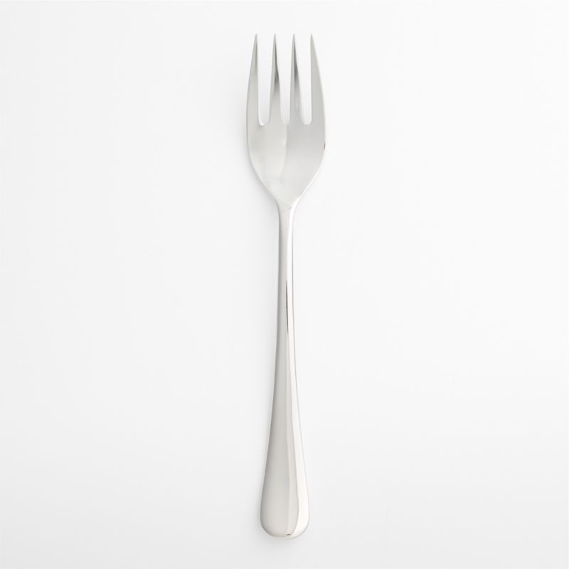 This serving fork is a great addition to our bestselling, classically styled Caesna flatware collection designed by Robert Welch Designs in the English Cotswolds. Made of forged stainless steel, the four-pronged fork is well-balanced with a comfortable heft and a shiny mirror finish. It's the perfect utensil for spearing meat slices or pairing with the matching spoon (sold separately) to dish out salads and sides.