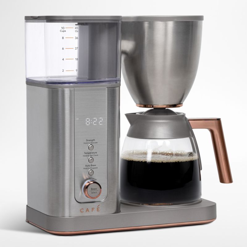 Adorn your counter with this handsome combination toaster oven and air fryer. Accented in rosy brushed copper, the stainless steel appliance not only graces the kitchen with a sleek silhouette, a modern palette and glam details. It also boasts fourteen cooking modes and a large temperature range that allow you to proof dough, dehydrate fruit and slow cook at low temps as well as bake pizza, roast vegetables and air fry appetizers at high heat. The rapidly heating appliance also serves as a toaster with dedicated bagel and toast functions. To give everything you make the perfectly browned and crispy finishing touch, use the Crisp Finish option. Control the WiFi-connected smart appliance remotely with the SmartHQ app or by voice using your home device. This generous capacity air fryer/toaster oven includes an oven rack, non-stick pizza pan, non-stick baking pan and wire-mesh basket.