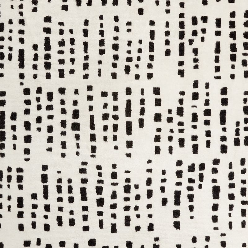 Broken lines made up of perfectly imperfect squares stripe the Calais rug with organic energy. A stunning contemporary piece, the high-pile rug evokes abstract art, urban skylines and natural animal prints in black on ivory. Talented artisans knot a blend of wool and nylon yarns to create a soft yet durable floor covering that stands up to high-traffic areas of the home.