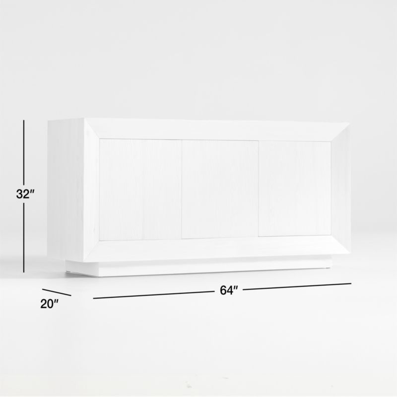 Raw in feeling, refined in execution, our Cali sideboard combines a modern silhouette with rustic authenticity. Set on a recessed plinth base, the sideboard encloses three flat front doors within a frame of crisply mitered corners, creating broad planes to highlight the natural beauty of pine. Heavily wirebrushed and given a light whitewash finish, the wood has a driftwood vibe that coordinates effortlessly with coastal, farmhouse or contemporary decor. Push-open doors open to one single and one double cabinet, each with an adjustable shelf. Simple, modern and geometric, the Cali pine sideboard is a Crate & Barrel exclusive.