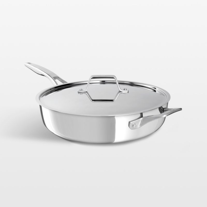 Calphalon's Premier cookware wraps a heat-responsive aluminum core with four layers of durable stainless steel. The result is a classic saute pan that resists warping, denting and staining so the mirror-polished surface stays stunning. Fitted with a handle that stays cool on any type of stovetop, the lidded pan heats quickly, simmers gently and sears impeccably (and stands up to the oven, broiler and dishwasher). Build a beautifully resilient cookware collection by pairing this versatile saute pan with the other Premier pieces.