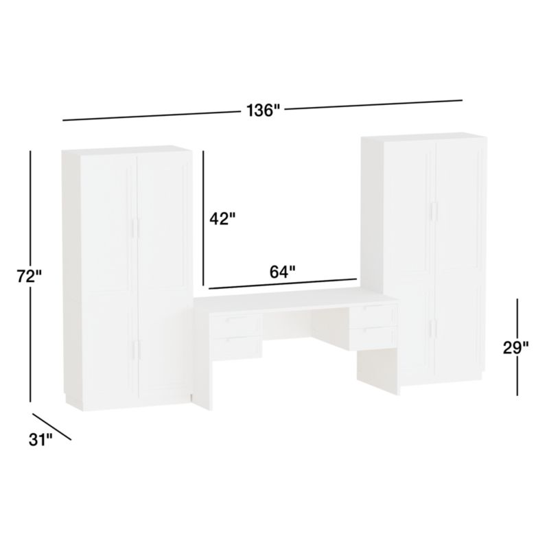 Calypso enhances the home office with a streamlined design and the beauty of elm wood finished in smart black. This set gathers together everything you need for a gorgeous and fully functioning office. In the center, a desk floats two sets of stacked drawers and includes integrated power. Flanking the desk are two-piece units each consisting of a wood-door base and glass-door hutch for a mix of open and closed storage. Stepped detailing adds linear design notes, while wirebrushing and a charcoal finish bring out the beautiful elm grain.