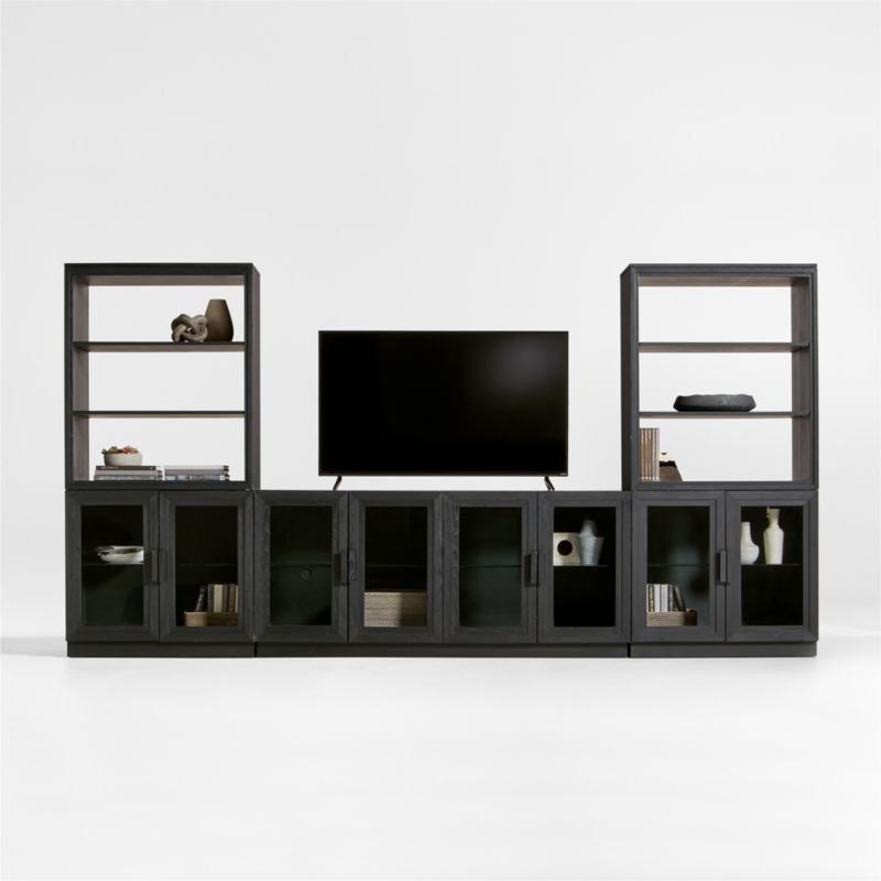 Calypso 144" Black Wood Media Console Set with Glass Door Bookcase