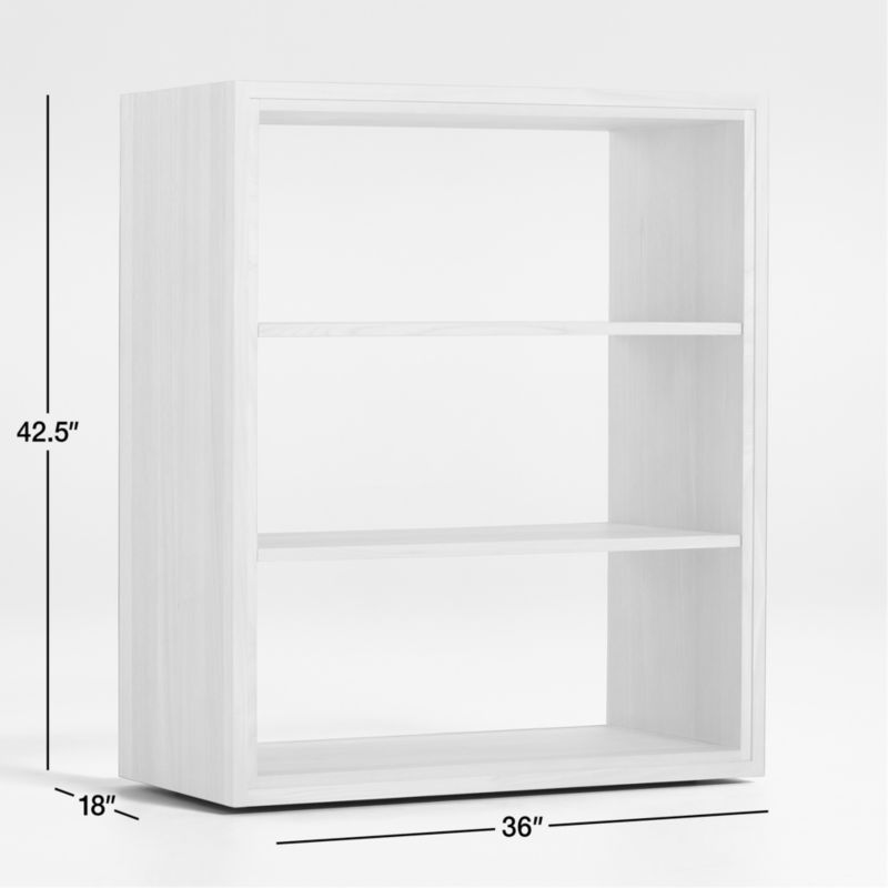 Inspired by vintage barrister cabinetry, our Calypso modular storage system lets you customize storage in style. The bookcase hutch provides open display of books, collectibles or media components with two adjustable shelves. Detailed with stepped trim, the elm wood frame is heavily wirebrushed and given a natural finish to bring out the wood grain. This timelessly styled open modular hutch is a Crate & Barrel exclusive.