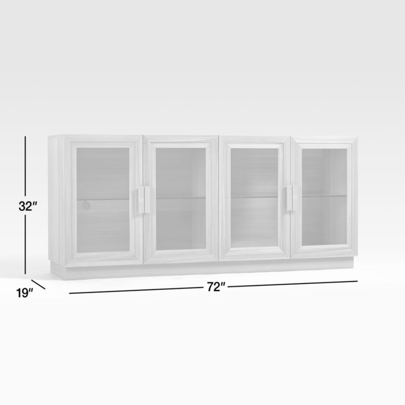 Calypso opens up media storage with a light and airy look. Glass doors as well as glass shelves shed light on media components, books and games. Elm wood frames with stepped trim, heavily brushed and given a black finish to bring out the grain. A recessed plinth base and blocky pulls add modern details to this timeless black media console, a Crate & Barrel exclusive.