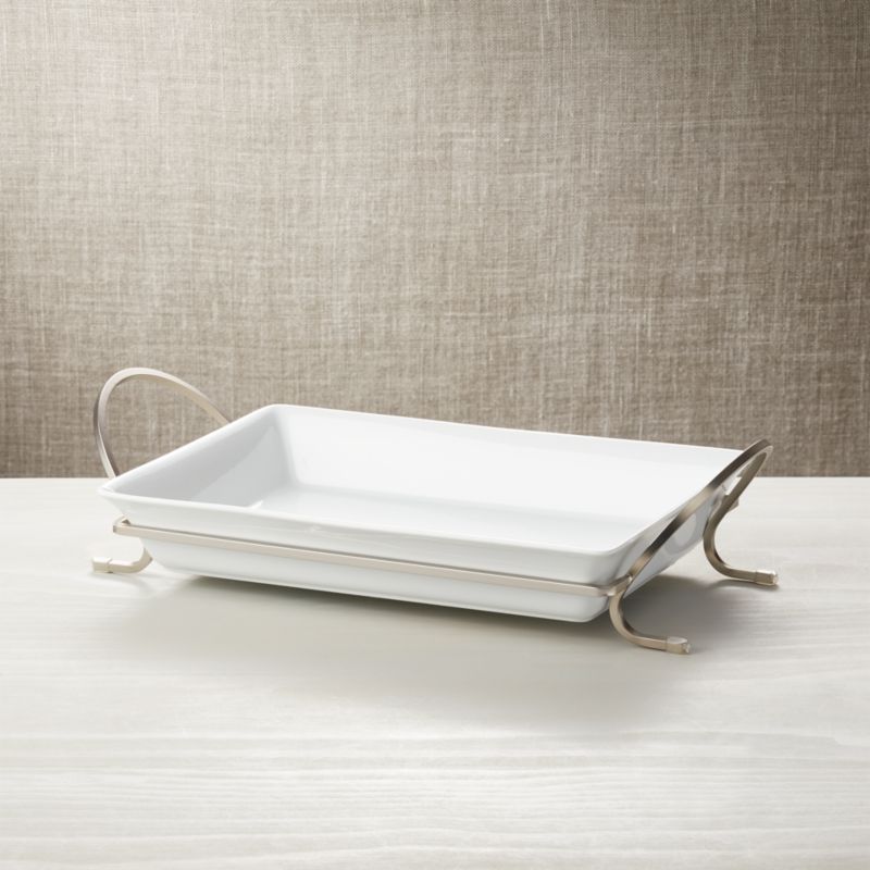 Oven-to-Table Rectangle Baking Dish with Wood Stand