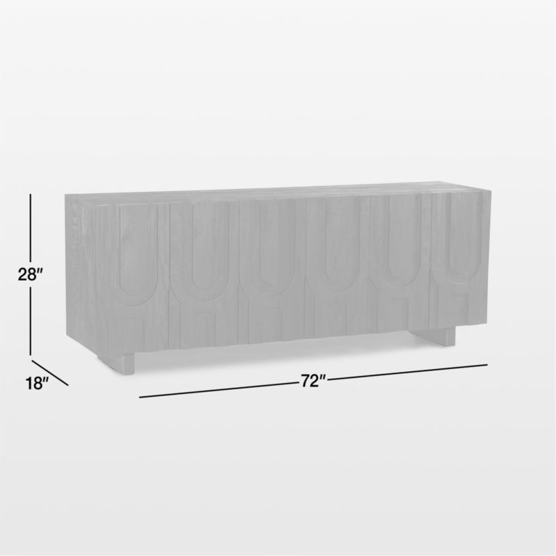 Living room storage gets an artisanal upgrade in our striking Camila media console. Like a sculpted relief panel, the cabinet showcases a repeating motif of curvilinear forks handcarved into each of the wood cabinet's six doors. The seamless design unites the wood console with rhythmic pattern, accentuated by the aged black finish. Double-doored cabinets open with finger pulls at the top to reveal three roomy storage compartments, each with a removable shelf.