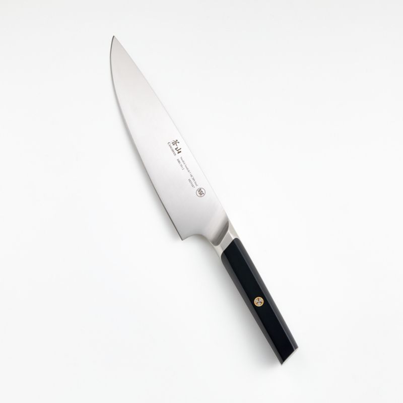 High-alloy Swedish steel takes and holds a precise edge for a chef's knife that maintains impressive sharpness even with daily use. The forged, full-tang blade goes through a six-stage heat treatment that creates stable structure, consistent hardness and exceptional sharpness. Designed to perform a variety of everyday cutting tasks, this International Red Dot design award-winning knife offers a comfortable, ergonomic handle in black finished with a delicately beautiful single mosaic rivet for a fresh look.